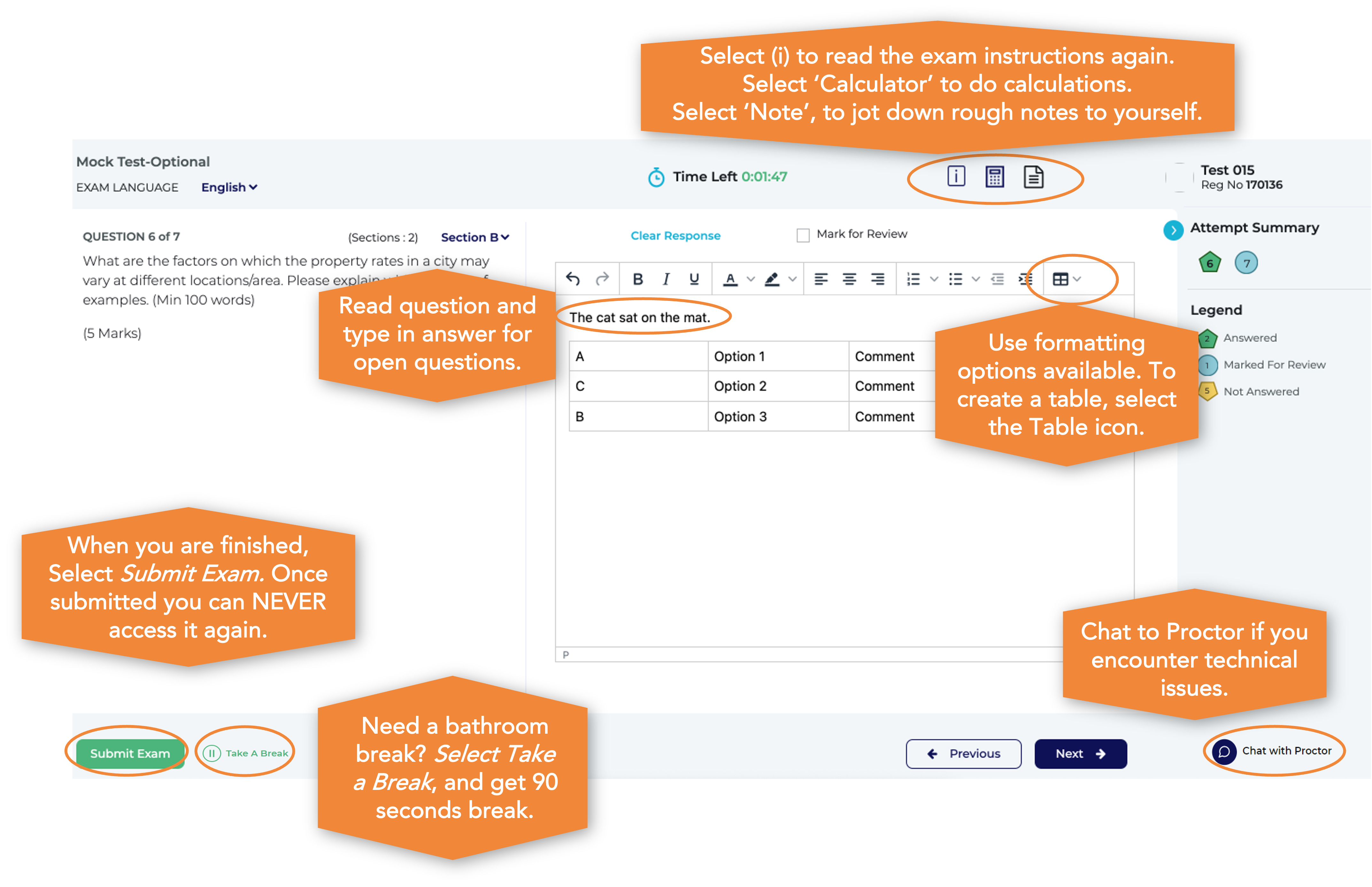 - Option to mark questions for review to remind yourself to come back to certain questions