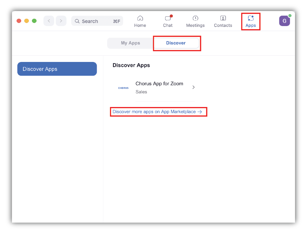 - Dans le Zoom, appuyez sur ‘’Apps’’ languette comme montrer dans le dessin.